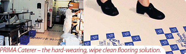 The PRIMA Caterer wipe clean range is slip resistant when wet, hygienic, flame retardent, and unbelievably hard wearing. Perfect for kitchens, indoor and outdoor catering areas, restaurant kitchens, entrances, building sites and multipurpose floors – in fact, anywhere the floor surface needs to be protected and kept clean.